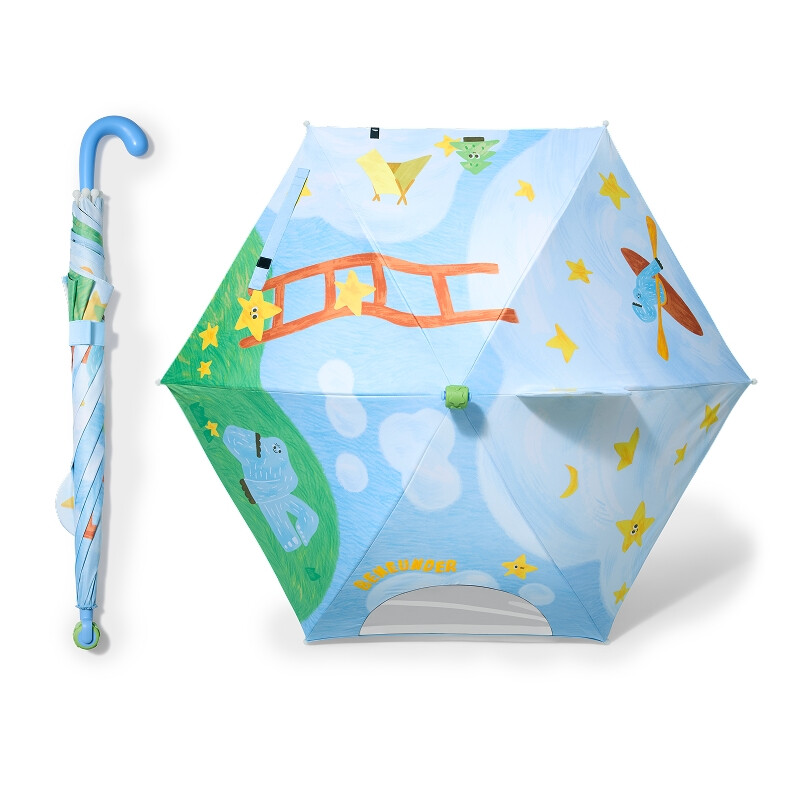 Beneunder RP160, Kids’ Straight-Handle Black Coating Umbrella Outdoor Windproof Waterproof, Blue, Couple Gift Perfect Gift