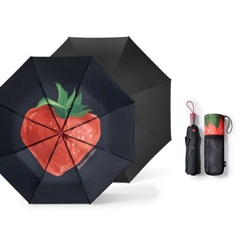 Beneunder BM397, Three-Fold Enhanced Black Coating Protection Umbrella Outdoor Windproof Waterproof, Black Strawberry, Couple Gift Perfect Gift