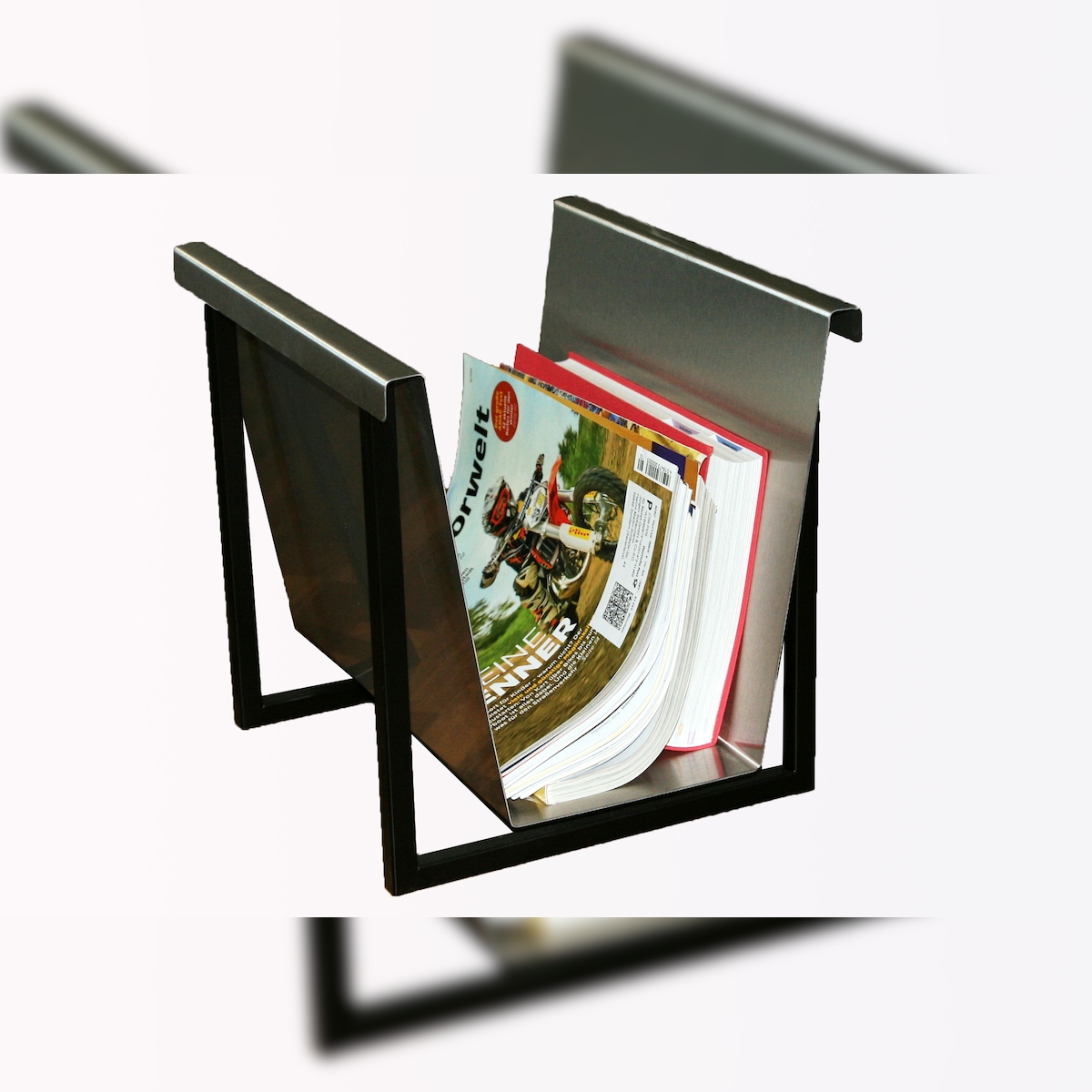 Zeitungsständer mit Rahmen HxBxT: 30x33x27cm Rahmen schwarz, Korpus: Edelstahl mattiert Made in Germany Szagato (Zeitungshalter Zeitschriftenständer)