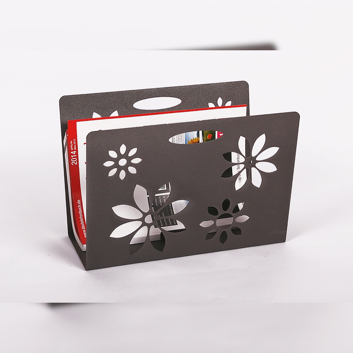 Zeitungsständer, Flower HxBxT: 23x32x12 cm, schwarz / Made in Germany, Marke: Szagato (Zeitungshalter, Zeitschriftenständer)