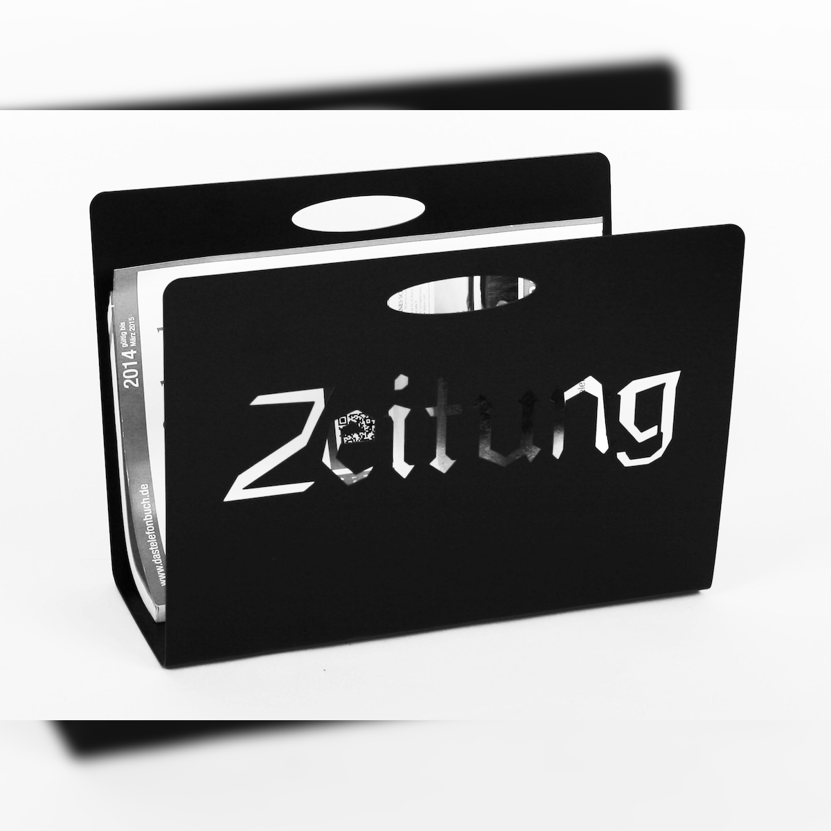 Zeitungsständer, Crown HxBxT: 23x32x12 cm, schwarz / Made in Germany, Marke: Szagato (Zeitungshalter, Zeitschriftenständer)