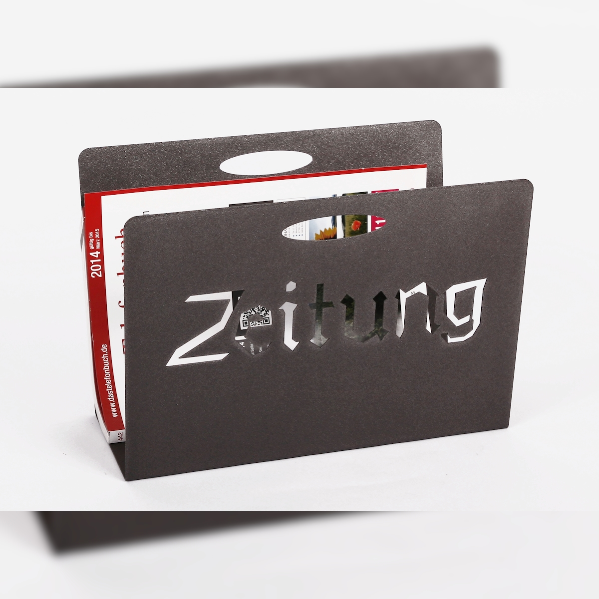 Zeitungsständer Rose, HxBxT: 23x32x12cm, moonstone-grau / Made in Germany, Marke: Szagato (Zeitungshalter, Zeitschriftenständer)
