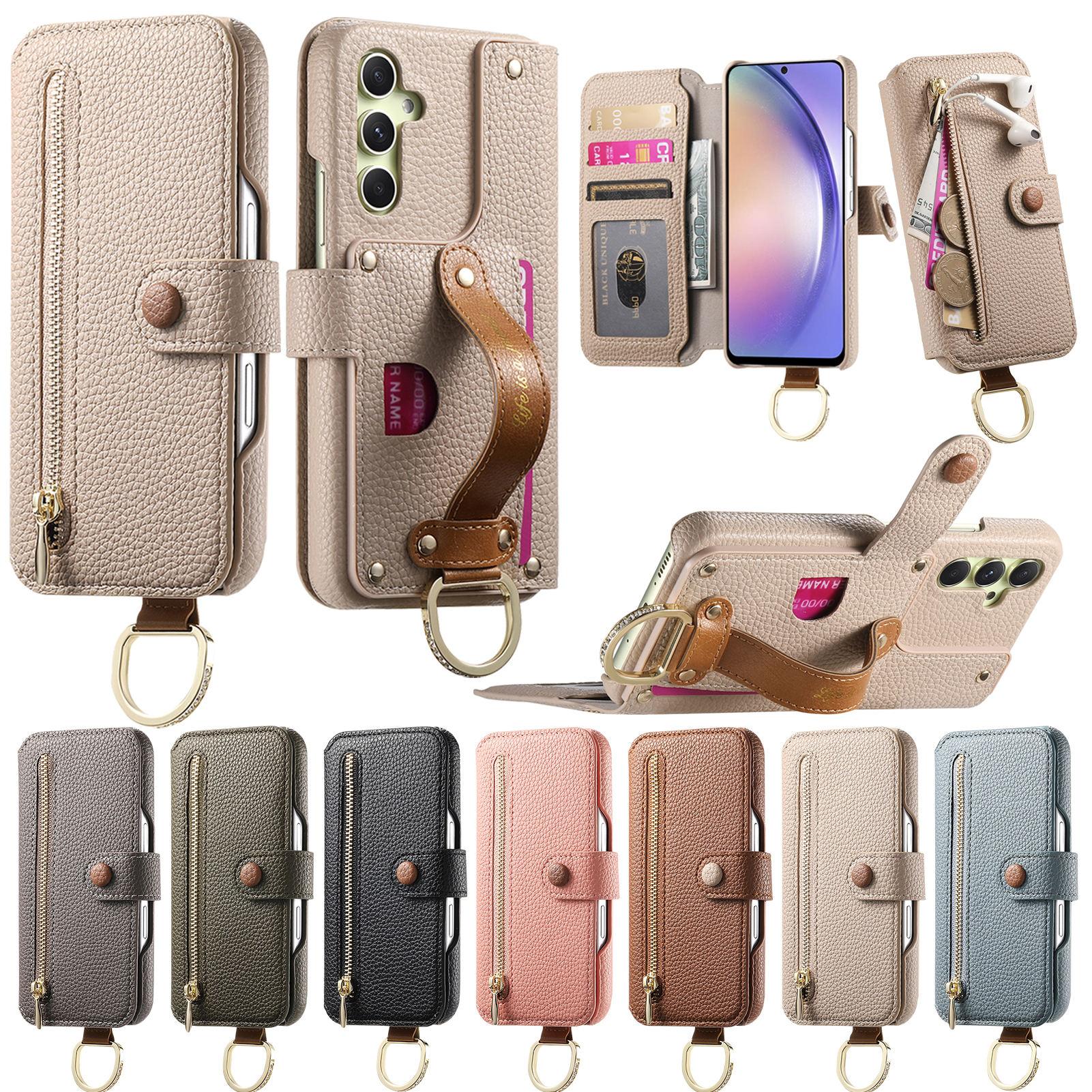 Leren Portemonnee Hoes 3-in-1 voor Samsung A13/A14/A15/A17...S21/S22/S23...Schokbestendig + Standaard + RFID-bescherming | Kristal-geaccentueerde Ring