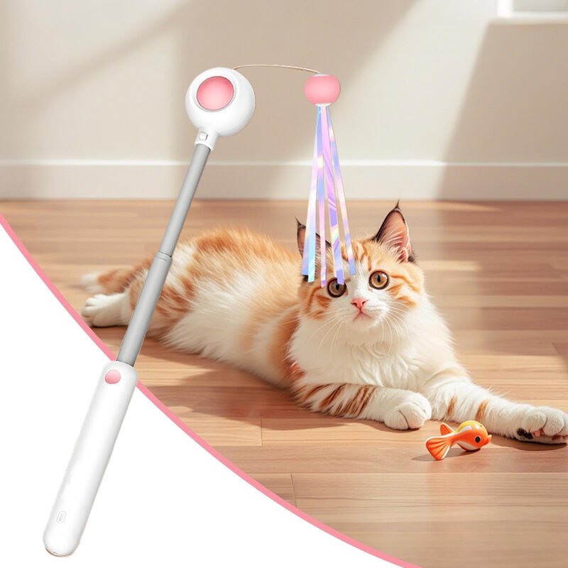 Petgravity Retractable Cat Teaser Wand, Pink, One-Touch Retract, with Laser Pointer, 23 cm Extension, 100 cm Rope Length