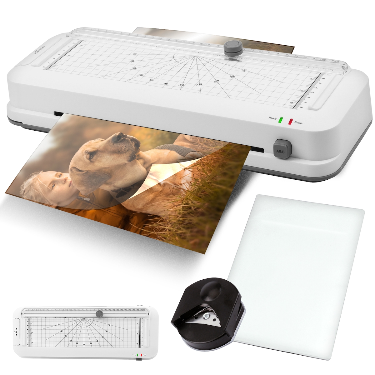 HP 4 in 1 Laminiergerät ONELam400 A4 mit Schneidelineal und Eckenrunder 15Folien
