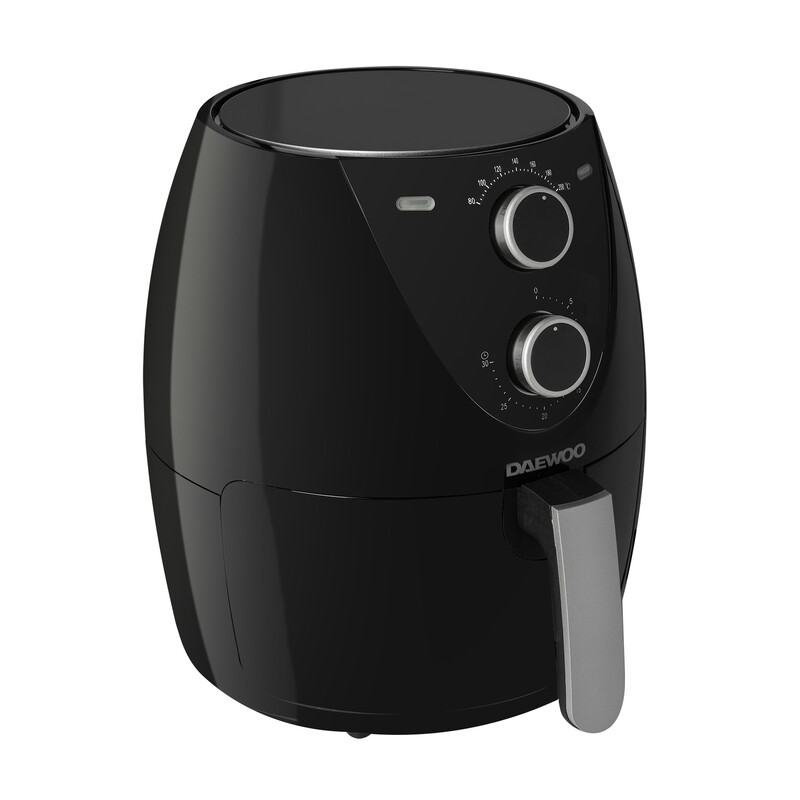 DAEWOO Single Pot Air Fryer - 2L, 900W, Black, Compact, 80-200°C, Manual Controls, SDA2609GE