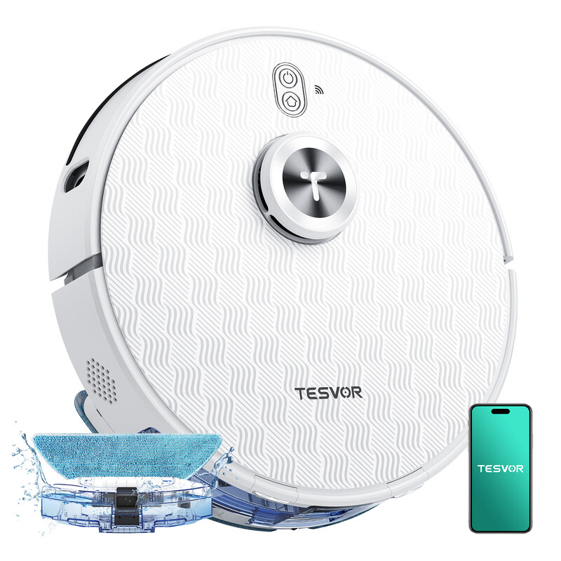Tesvor S8Pro Aspirateur robot avec fonction lavage, 8000 Pa, fonction 3-en-1, navigation LiDAR, autonomie 240 min, contrôle via application/Alexa, idéal pour les poils d'animaux