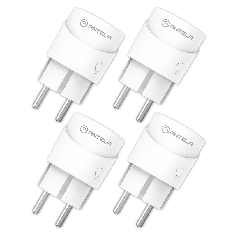 Antela WLAN-Smart-Steckdose mit strommessung 16 A, smart-home-steckdose kompatibel mit Alexa/Google Home, stromverbrauchsmessung, sprachsteuerung, app-fernsteuerung, 2,4 GHz, 4 stück