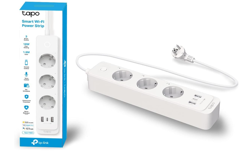 TP-Link Tapo P300 Steckdosenleiste mit 2 USB-Anschlüssen und 1 Typ-C-Anschluss, Mehrfachsteckdose mit Sicherheitsgarantie, funktioniert mit Alexa, Google Home, HomeKit Sprachsteuerung, Fernzugriff, 1,5 m, Weiß