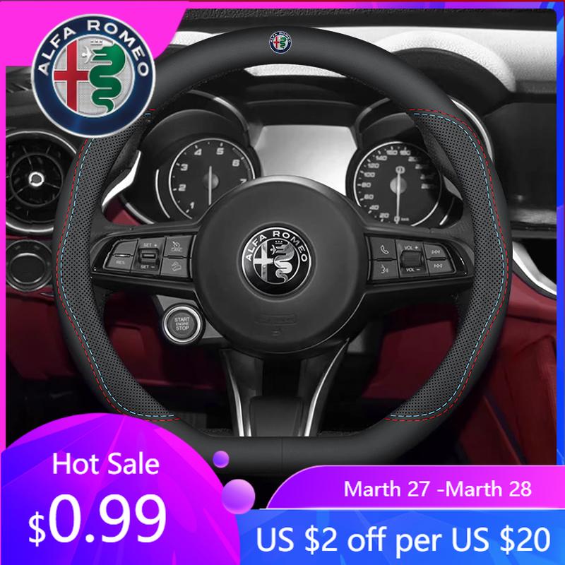 Für Alfa Romeo Auto Leder Rutschfeste Lenkradabdeckung Für Alfa Romeo 4C 159 Spider Giulia Giulietta 156 Tonale Mito Auto Inter