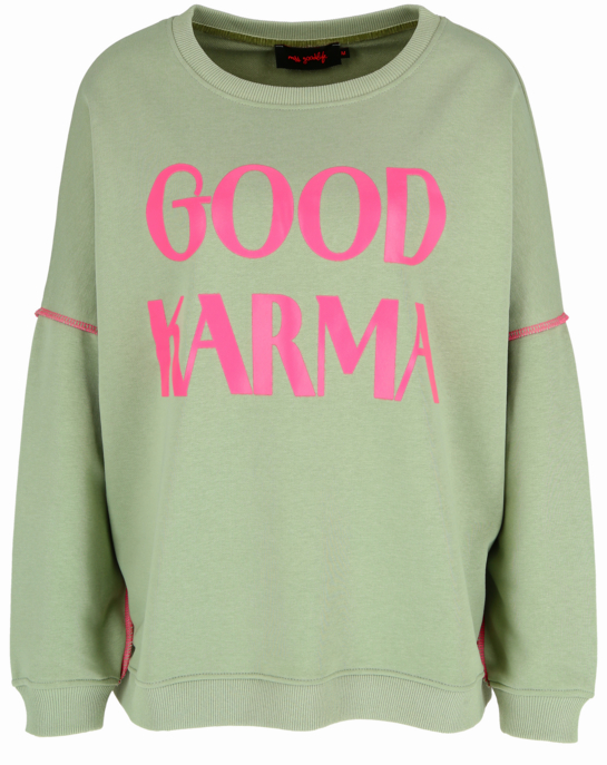 Miss Goodlife Sweatshirt "Roundneck Good Karma Good Luck" Gr. M in almond | 100% Baumwolle