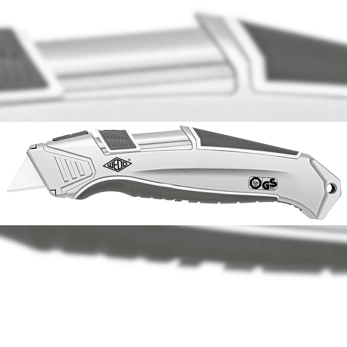 WEDO 79825 Safety Cutter CERA-Safeline Alu, Keramik Klingen, Aluminium Gehäuse, Autom. Klingenrückzug, integriertes Magazin, TÜV/GS-GEPRÜFT