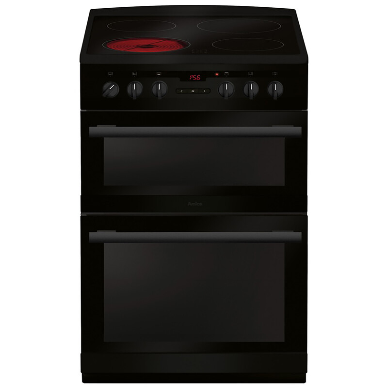 Amica AFC6550BL Ceramic Electric Cooker with Double Oven, Black, A Rated