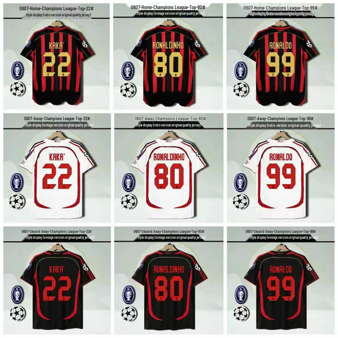 Classic Retro 0607AC Home & Away Commemorative Jersey: Kaká #22, Ronaldinho #80, Ronaldo #99 cm