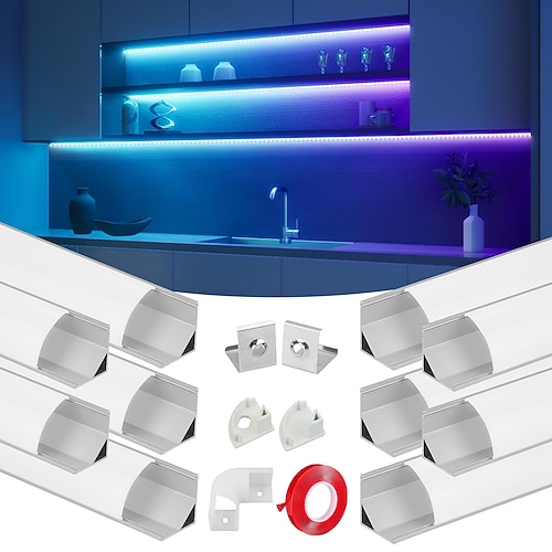6 pezzi 10 pezzi 3,3 piedi/1 m canale LED a forma di V canale diffusore striscia LED in alluminio argentato con copertura bianco latte illuminazione angolare smerigliata facile installazione nessuna