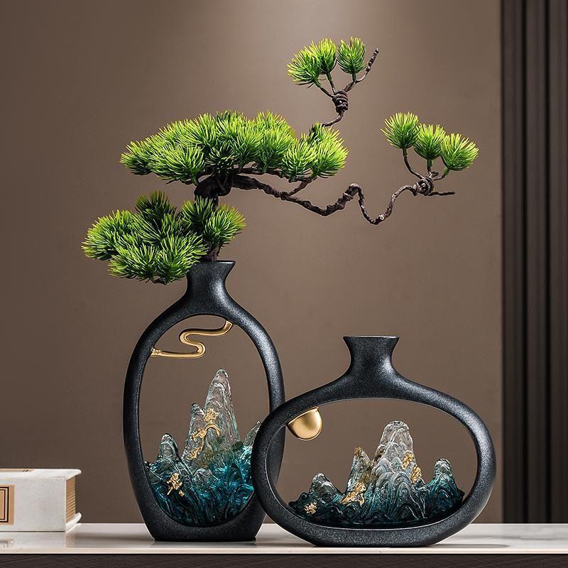 Antique-Style Rockery Vase: Pine Decor for Living Room, Entrance, or Office - Ideal Housewarming Gift