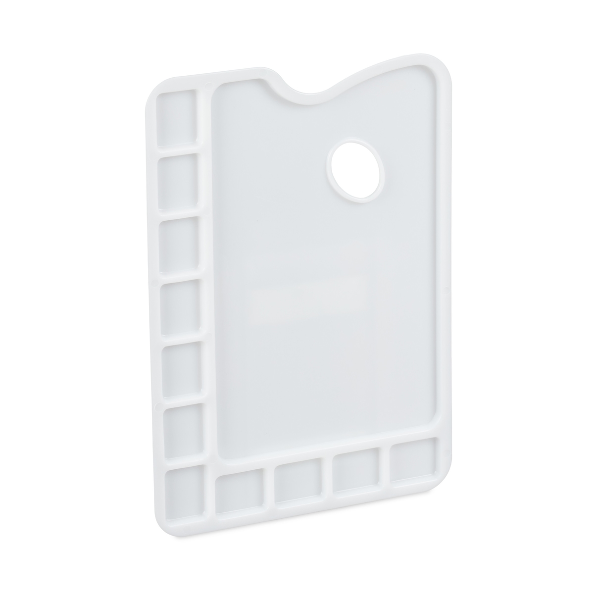 Relaxdays Mischpalette mit Griffloch, Aquarell- u. Acrylfarben, 11 Mulden, Kunststoff, BxT: 33,5x23 cm, Malpalette, weiß