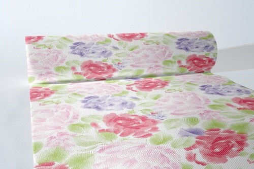 MANK Tischläufer Airlaid Valerie, 40 cm x 24 m , 1 Stück - Aquarell Blumen Blüten Tischtuch Tischband