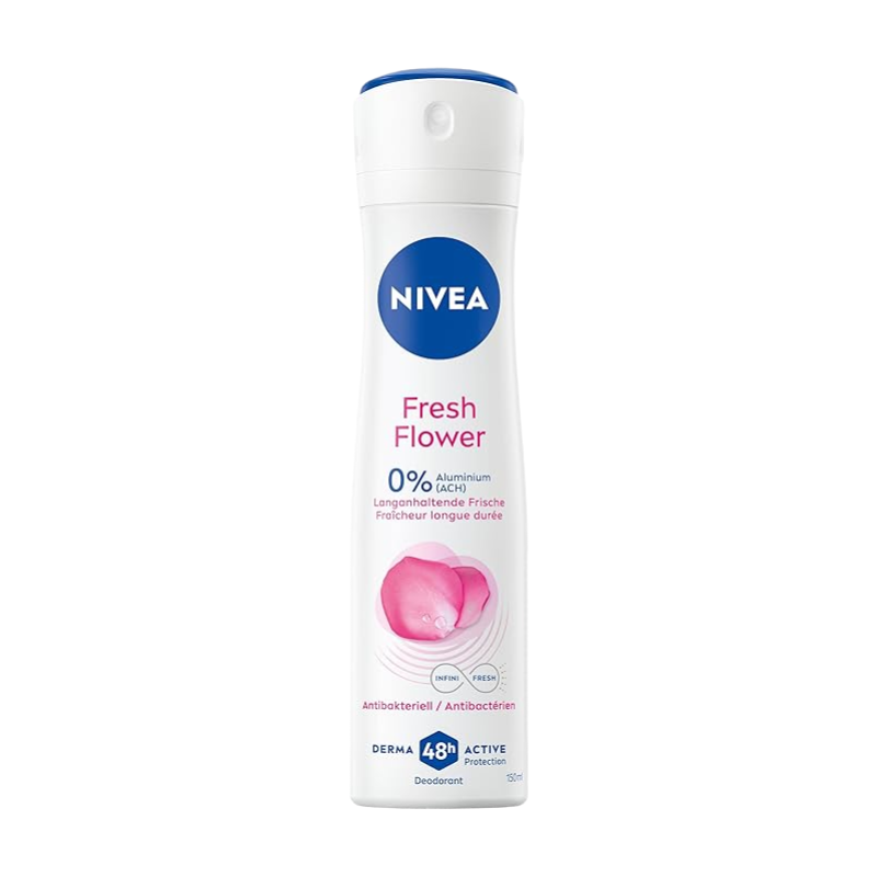 NIVEA Fresh Flower Deo-Spray, Aluminiumfreies Deo (ACH) mit sanfter Pflege, antibakterielles Deo mit 48-Stunden-Schutz und einzigartiger Infinifresh-Formel (150 ml)