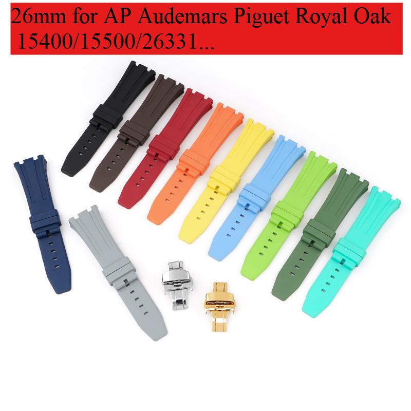 Fluoro Rubber Strap for Audemars Piguet Royal Oak 15400 15500 26331 Butterfly Buckle Men Soft FKM Replace Watch Band for AP 26mm