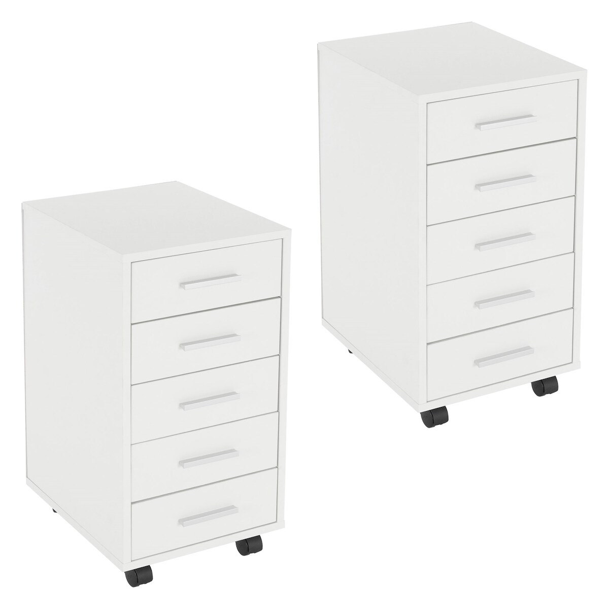 ML-Design Rollcontainer 2er Set 5 Schubladen 33x38x63,5 cm Weiß Holz Alu-Griffe Bürocontainer Rollschrank