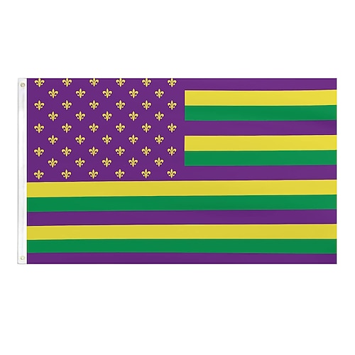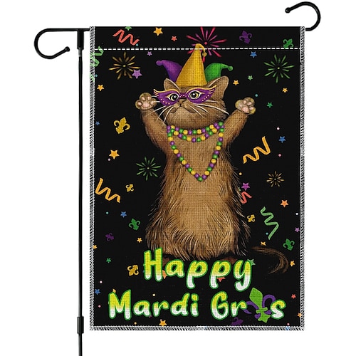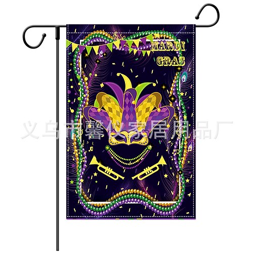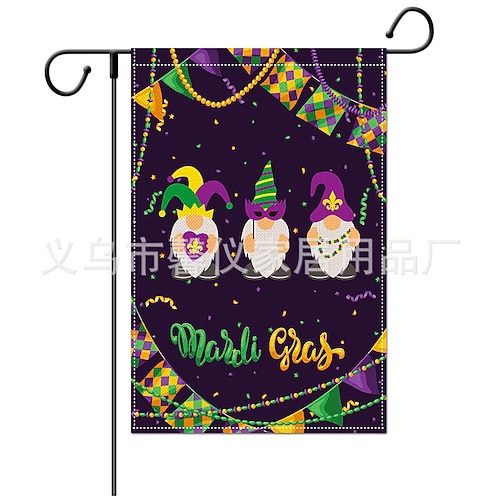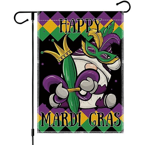 Confezione da 3 bandiere da giardino per il martedì grasso, 12x18 pollici, doppia faccia, bandiere da casa con giglio viola, verde e oro, per decorazioni da giardino, per esterni, per prato,