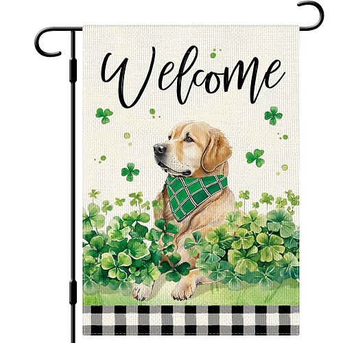Confezione da 2 bandiere da giardino irlandesi per il giorno di San Patrizio, bandiera decorativa da cortile in lino con stampa bifacciale Lucky Grass Pie