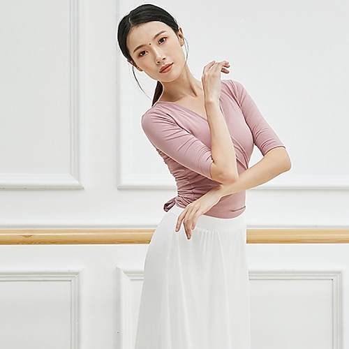 top da balletto traspirante fasciatura arricciata solido allenamento da donna mezza manica modal