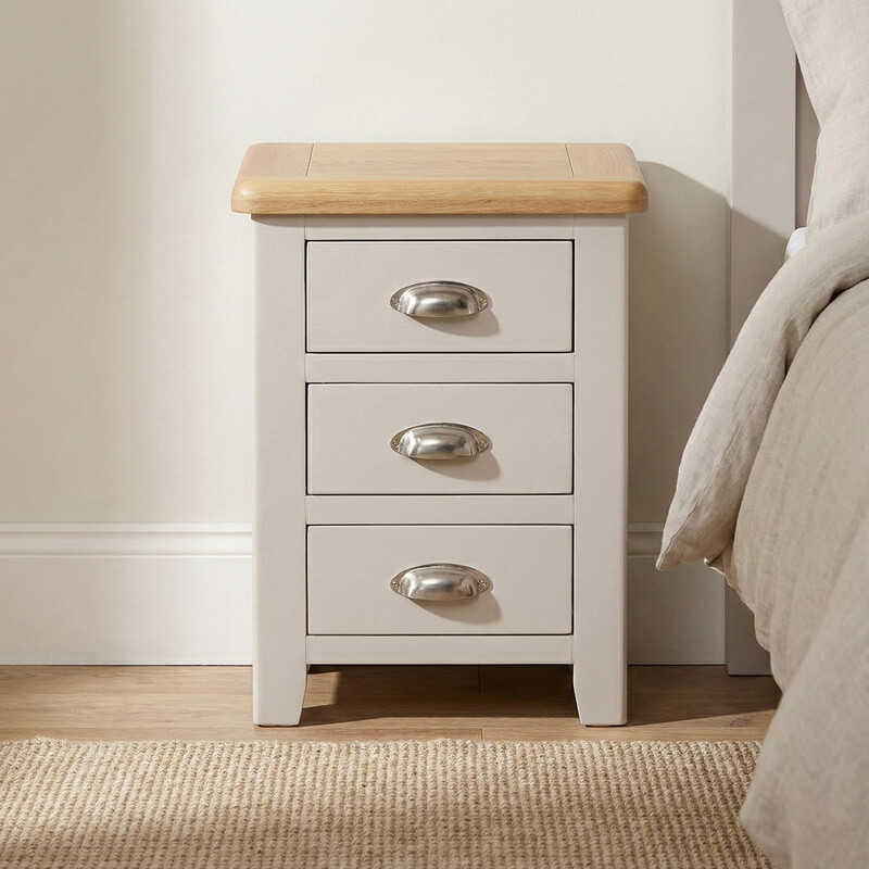 Bedside Table Windermere 3 Drawers Oak Top Grey/Natural