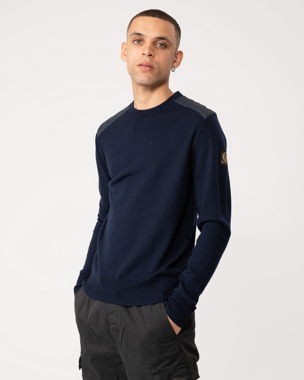 Belstaff Kerrigan Mens Merino Wool Crew Neck Jumper - Navy - Size Medium | Belstaff Sale | Discount Designer Brands
