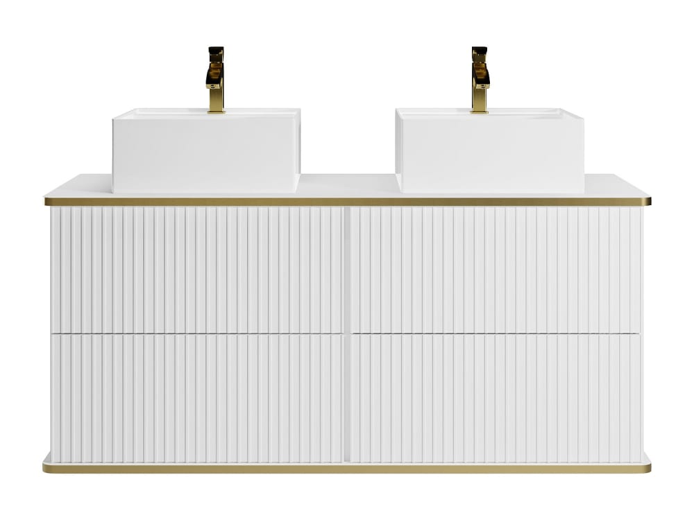Set di mobili da bagno doppio lavabo effetto legno bianco 140cm