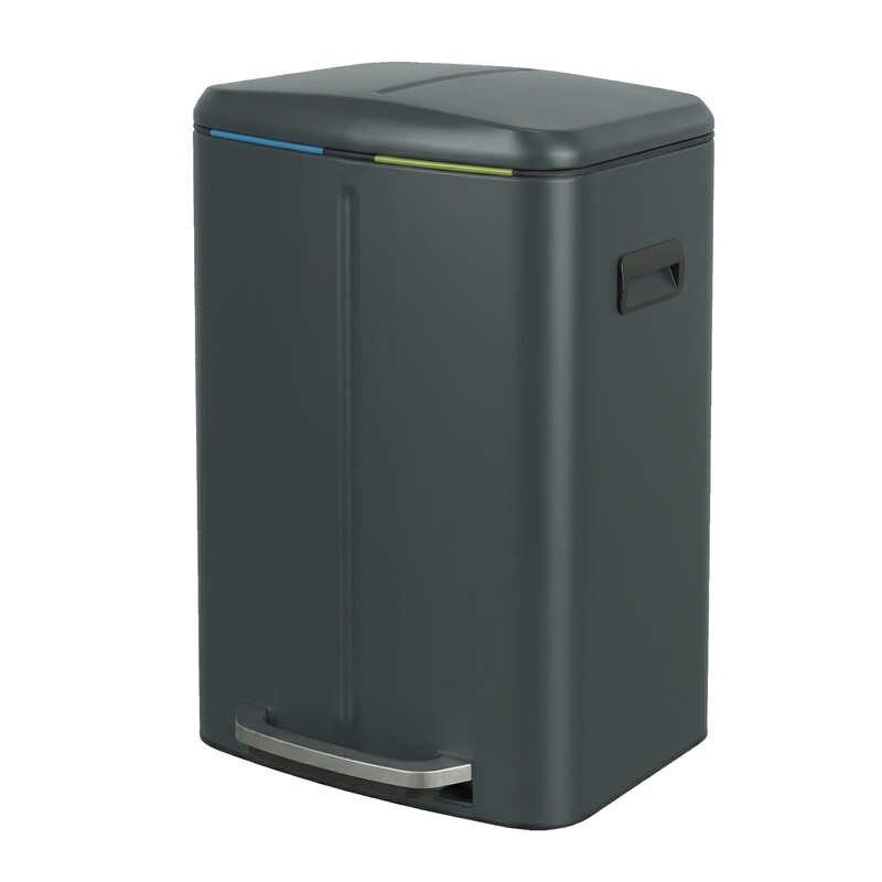 SONGMICSHOME Kitchen Bin with 2 Compartments, 2 x 30 L Double Rubish Bin with Lids, Pedals, Plastic Inner Buckets, Soft Close, Grey