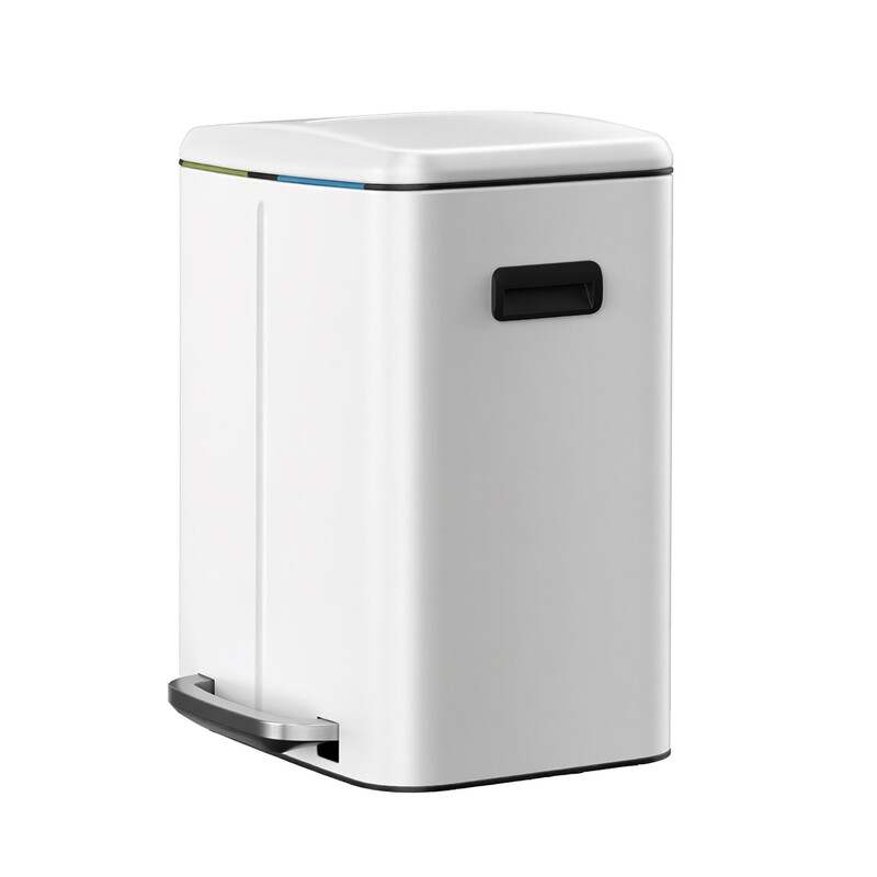 SONGMICSHOME Kitchen Bin with 2 Compartments, 2 x 30 L Double Rubish Bin with Lids, Pedals, Plastic Inner Buckets, Soft Close, White and Grey
