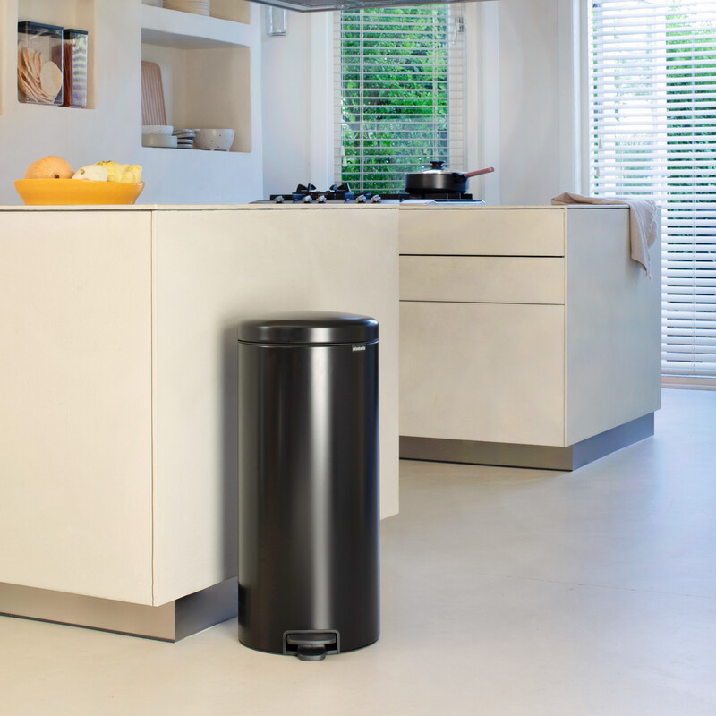 Brabantia NewIcon Pedal Bin, 30litre, Soft Closing, Plastic Inner Bucket, Matt Black