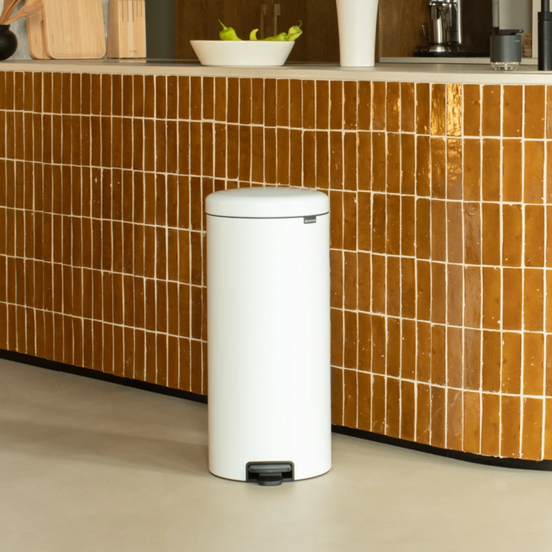 Brabantia NewIcon Pedal Bin, 30litre, Soft Closing, Plastic Inner Bucket, White