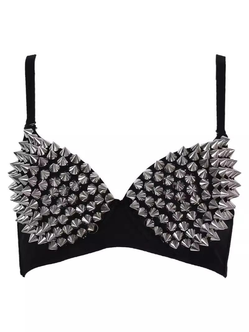 Rivet Bra: Sparkly Rhinestone Punk Lingerie for Nightclub, Bar, or Belly Dance Performance cm silver