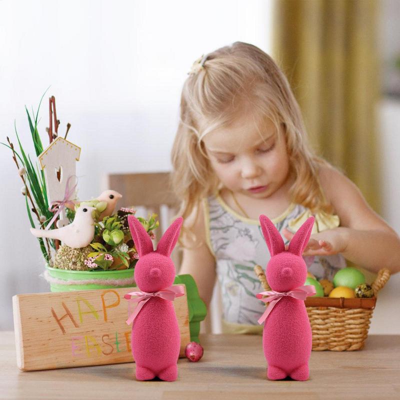 Décor Lapin de Pâques Floqué Sculpture Debout pour Tableau de Bord Centre de Table Printemps Décorations de Crèche Pour Étagère rose