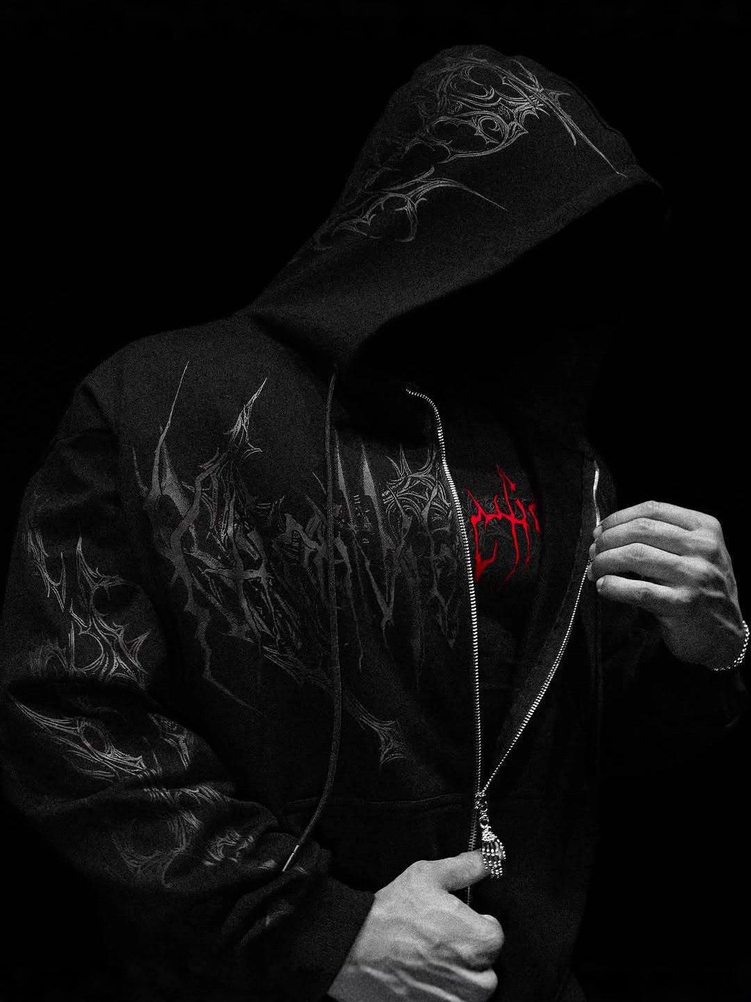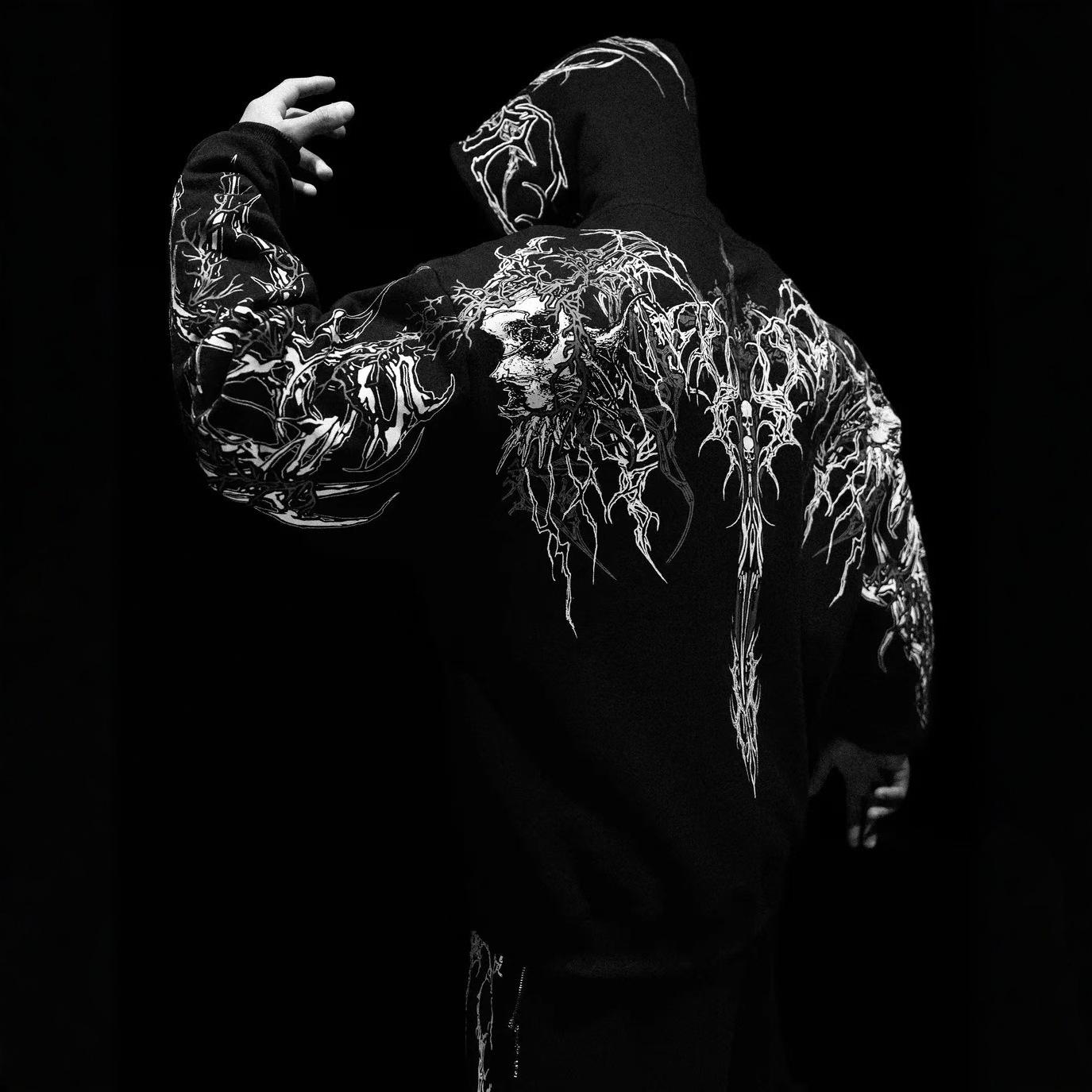 Breathedivinity Men's Dark Style Hoodie - Trendy Autumn/Winter Sports Outerwear cm