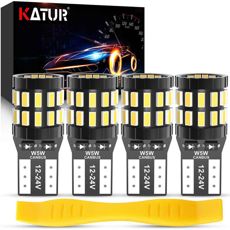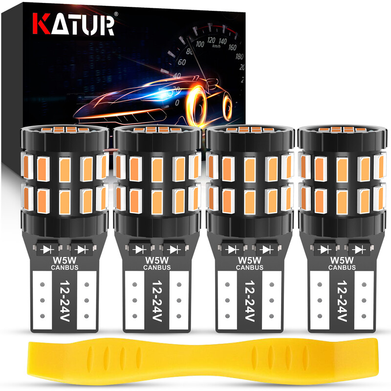 KATUR 194 T10 W5W 501 168 LED Bulb Super Bright Amber Yellow 12-24V Canbus Error Free LED Bulbs Replacement for Car Dome Map Door Courtesy License Plate Light, 4pcs
