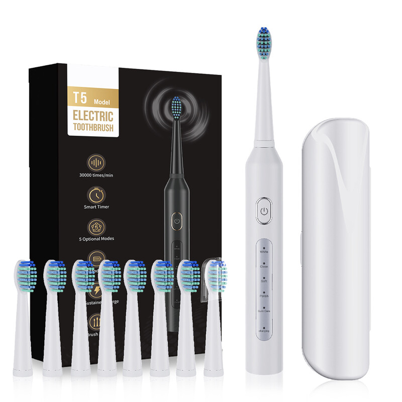 Sunluxy T5 Brosse à dents sonique électrique rechargeable avec 8 têtes de brosse et minuteur intelligent - Noir