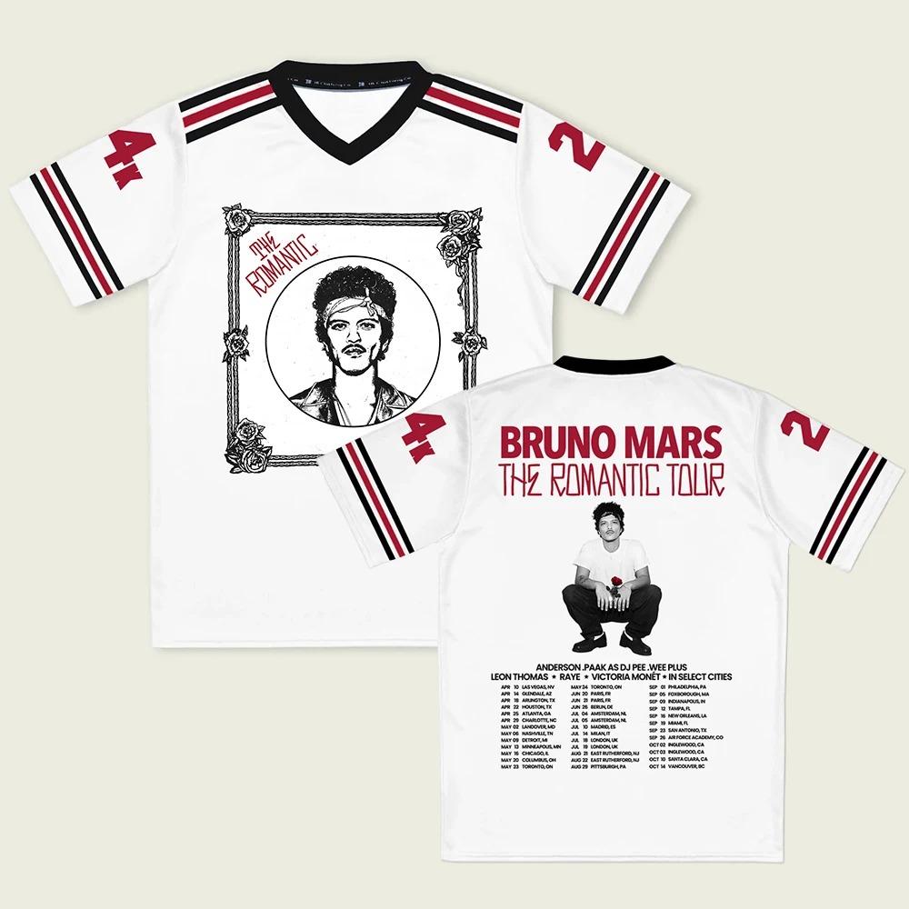 Bruno Mars The Romantic Tour 2026 Jersey V-neck Short Sleeve Loose Male Tees Summer Unisex Streetwear 3D Printing Design Merch Mens womens clothing cm