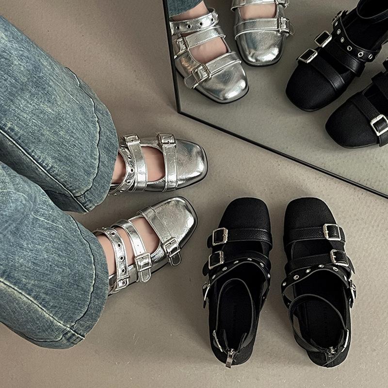 Inner heightening belt buckle ballet shoes French temperament 2025 new fashion retro flat shoes Mary Jane shoes cm black