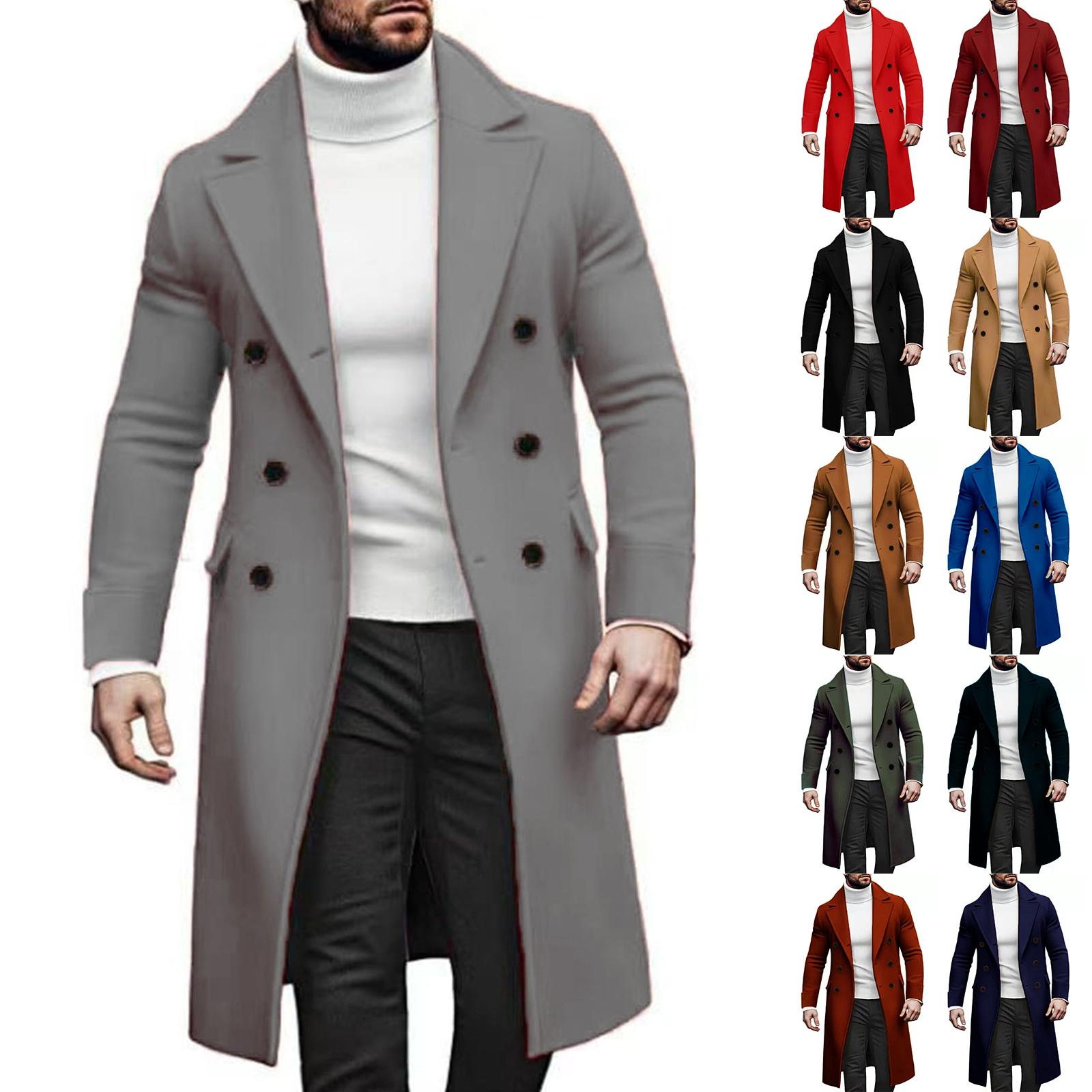 Trench-coat pour homme à revers cranté, croisé, caban, mélange de laine, décontracté, long cm