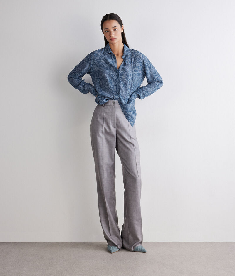 Falconeri Camicia con colletto in seta stampata Donna Jacquard Acquamarina Dark Taglia M