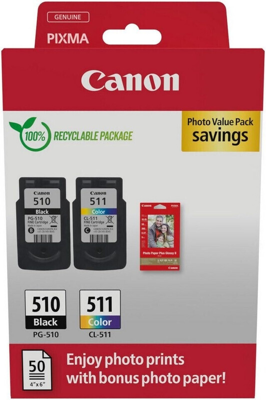Canon Tintenpatronen & Papier-Multipack - PG-510/CL-511 Original Druckerpatronen 2er Pack (1 x Schwarz, 1 x Farbe) & 4x6 Fotopapier (50 Blatt)