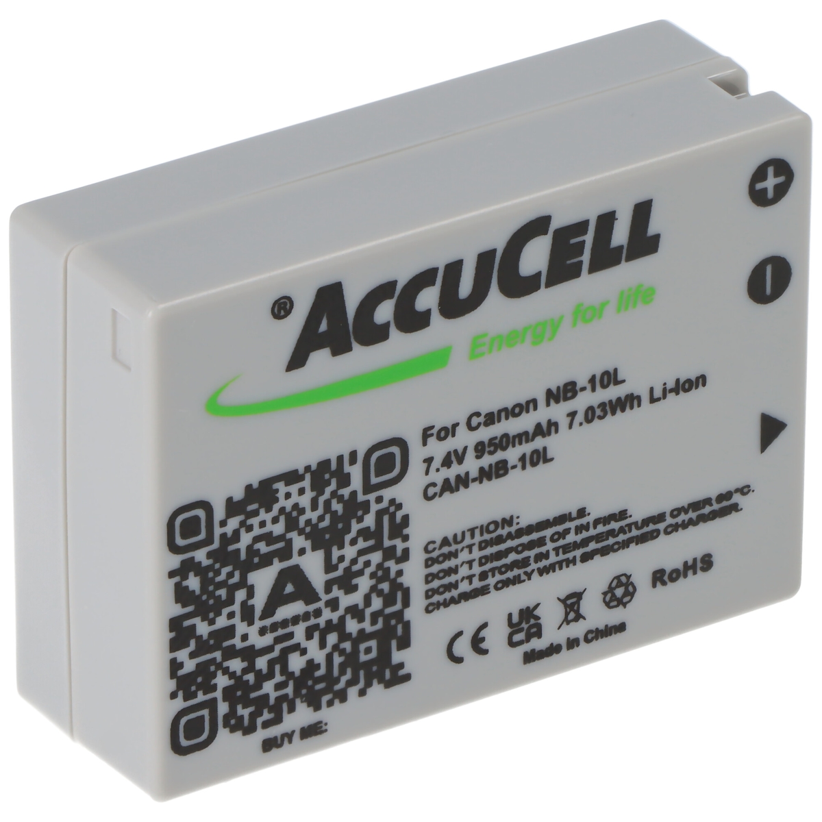 AccuCell Akku passend für Canon NB-10L, PowerShot SX40 HS, Li-Ion 7,4 Volt, 750-950mAh Abmessungen 45,5x32,4x15,2mm