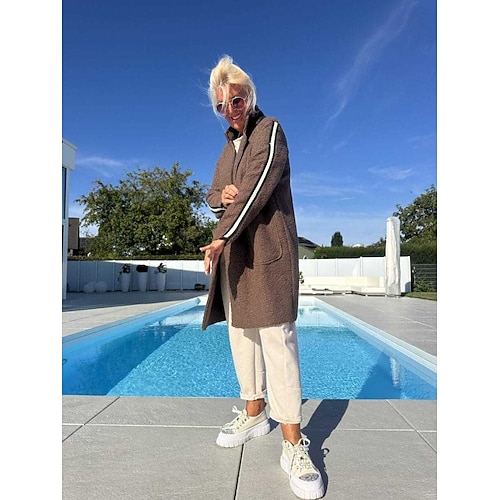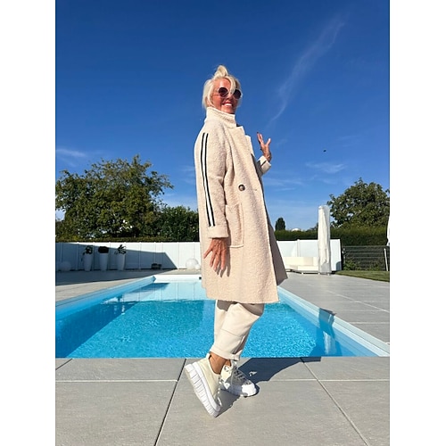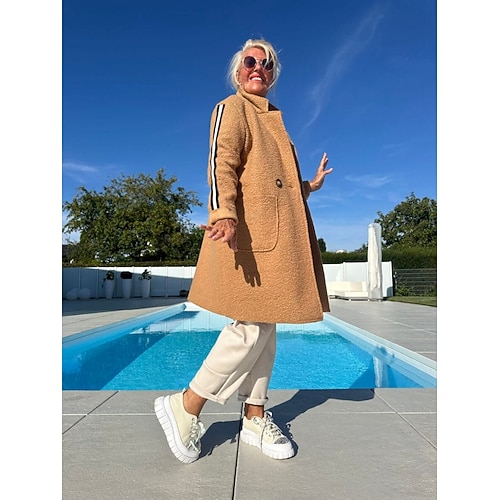 Per donna Cappotto Invernale Confortevole Bottoni Moda Semplice Ferie Uscire Monopetto Regolare Girocollo Vestibilità regolare Manica Lunga Capispalla Bianco Cachi Caffè Autunno Inverno