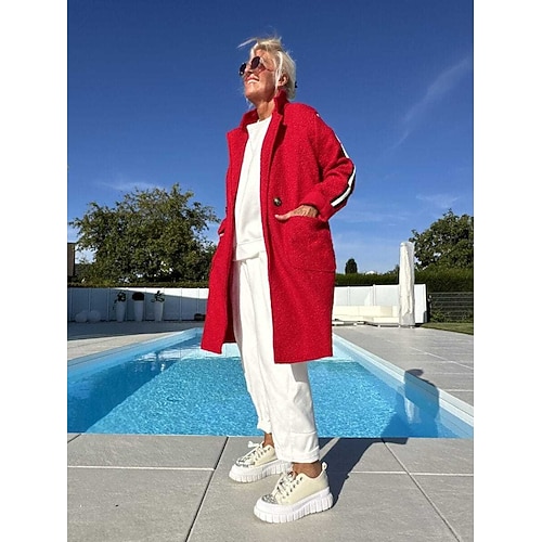 Per donna Cappotto Caldo Bottoni Casual Abbigliamento quotidiano Bavero Vestibilità regolare Manica Lunga Capispalla Bianco Rosso Arancione Autunno Inverno