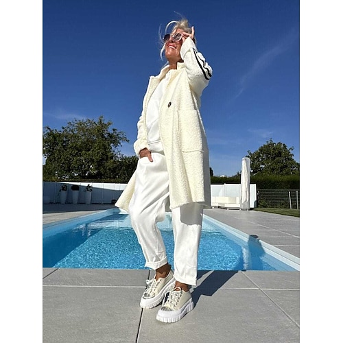 Per donna Cappotto invernale Esterno Strada Da tutti i giorni Autunno Inverno Lungo Cappotto Standard Tenere al caldo Traspirante Moda Informale Giacca Manica lunga Tinta unica Con tasche Nero Bianco