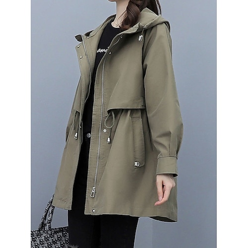 Per donna Trench Lungo Lacci Collage Cappotto Nero Blu Cammello Beige Giornaliero Autunno Monopetto Standard S M L XL XXL 3XL / Inverno